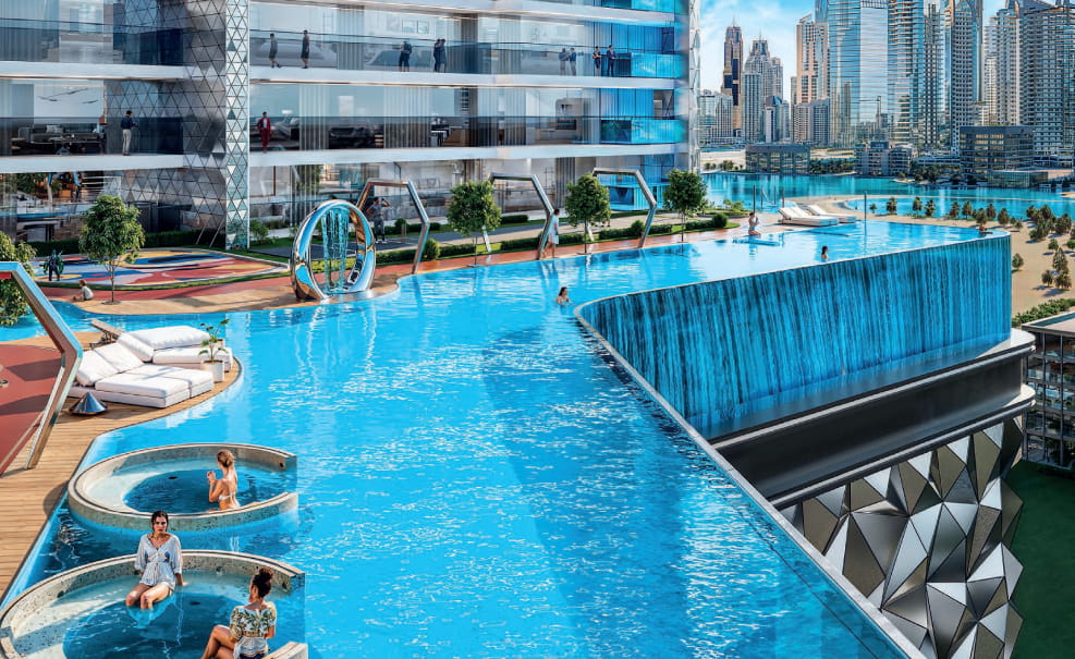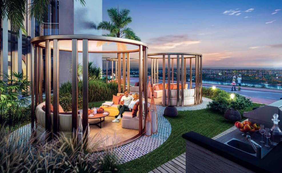 This luxury development features an infinity pool, sky golf, cabana seating, yoga and zumba decks, an open-air cinema, a state-of-the-art gym, retail outlets, and dining options, offering residents unparalleled convenience and leisure.​